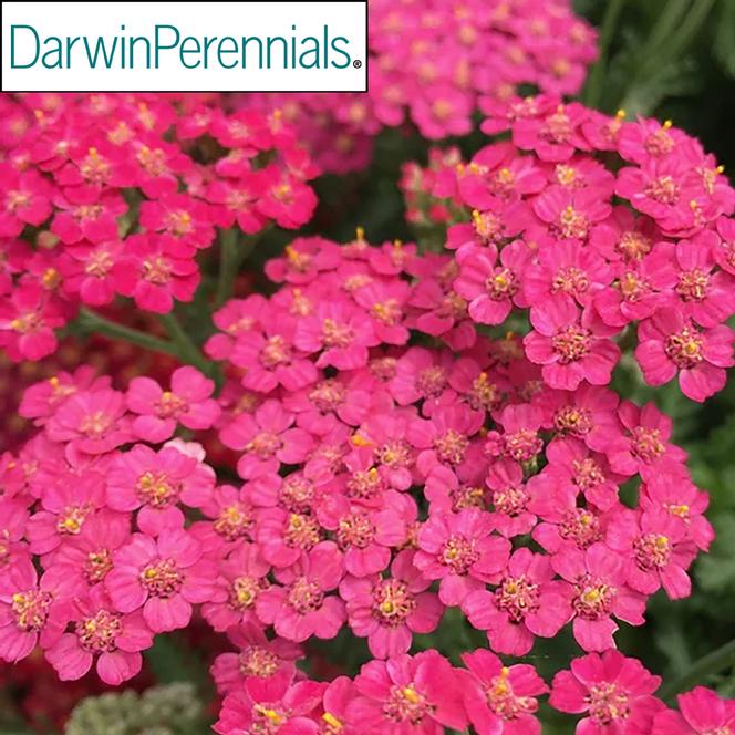 - Hot rose, non-fading clusters on a fern-like foliage. Re-bloomer.